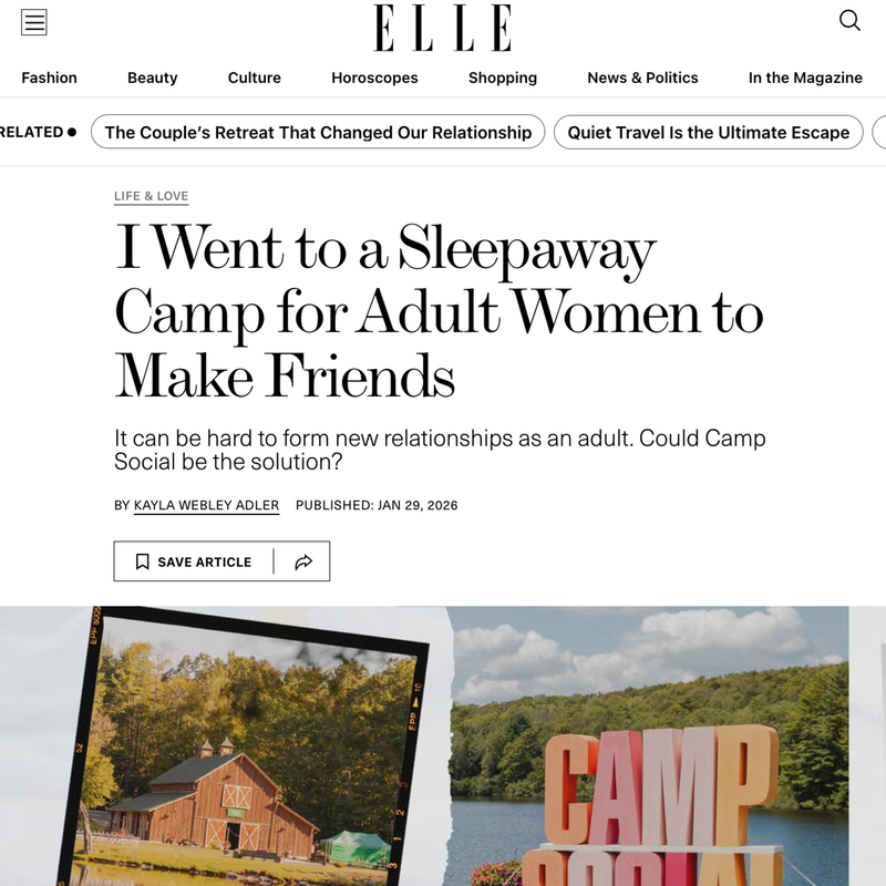 Camp Social is a women’s-only sleep away camp weekend that brings over 300 women from around the world together to connect IRL. 99% arrive solo, and 100% leave as friends. It’s part nostalgia, part utopia and complete magic. Expect the best weekend of your adult life-filled with laughter, friendship, and maybe a few happy tears.
